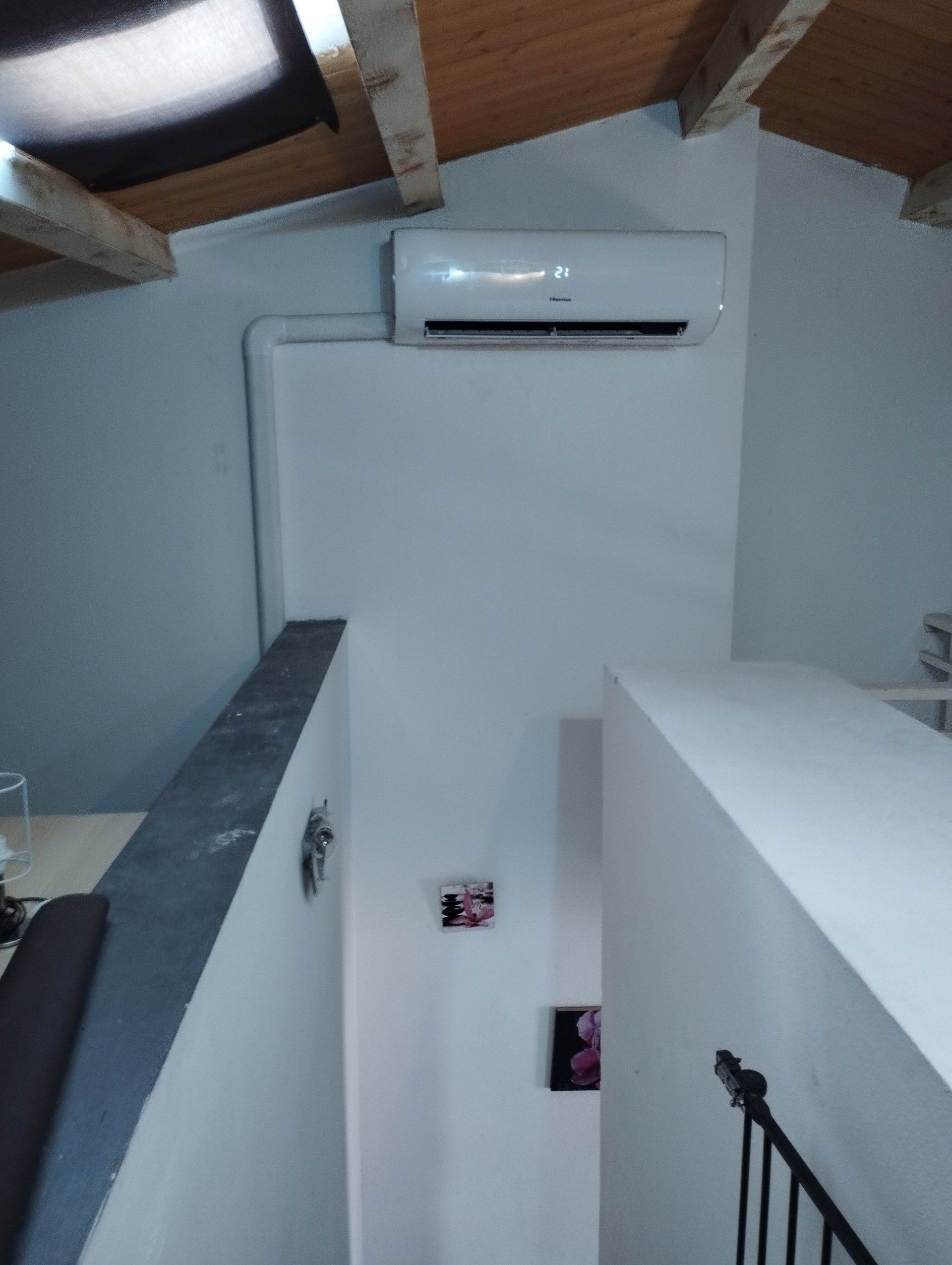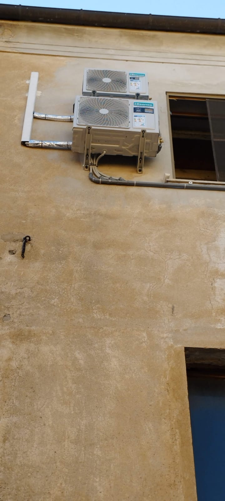 Installazione n°2 condizionatori (1)9000btu; (1) 12000btu; compreso di canalina contenitiva per tubazioni gas e cavi di collegamento macchine e alimentazione elettrica all' interno dell' abitazione; tubazione rigida per scarico di condensa sulla facciata esterna dell' abitazione.